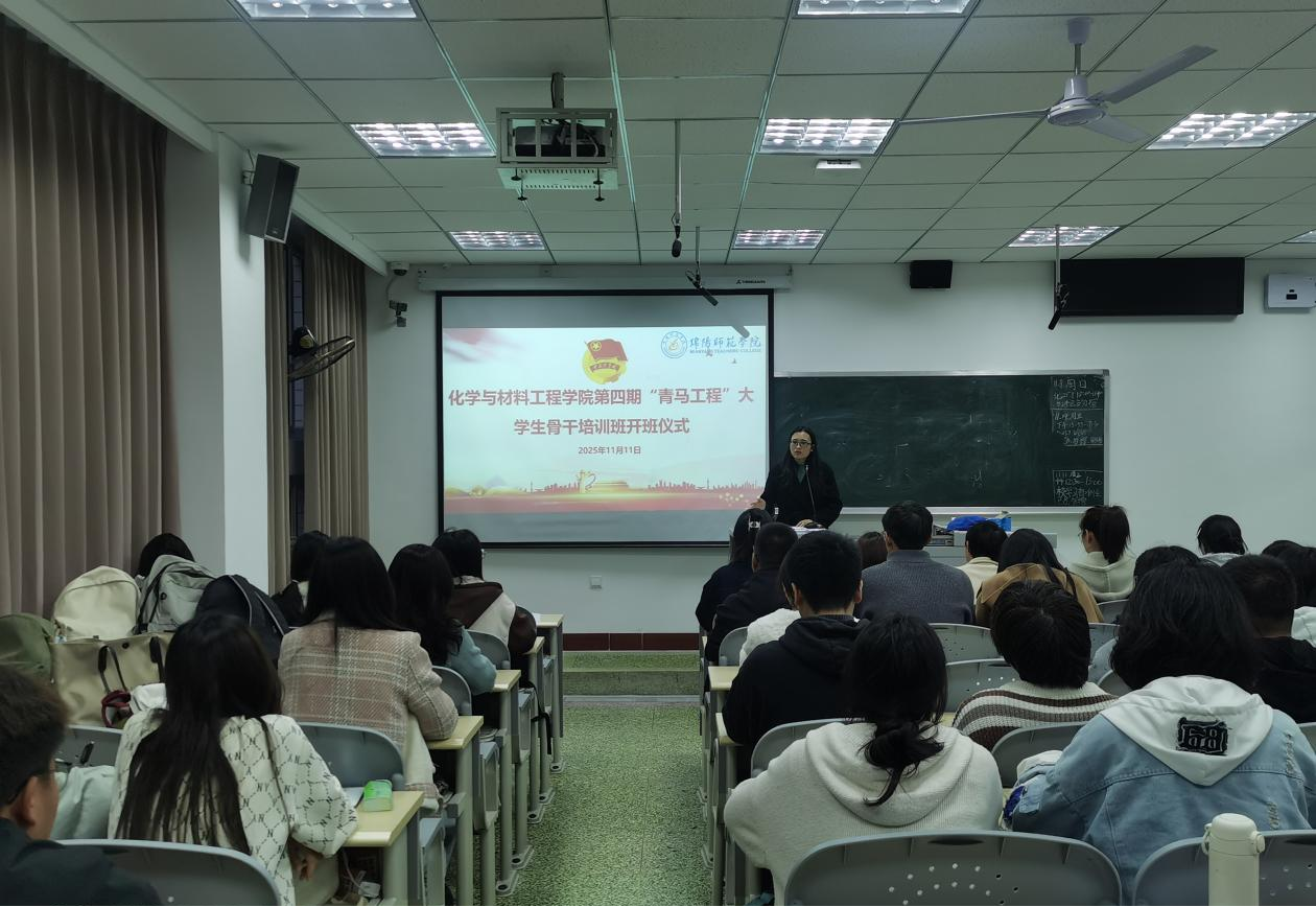 为深入学习贯彻习近平新时代中国特色社会主义思想,培养造就信仰坚定、能力卓越、素质优良、作风过硬的青年政治骨干,化学与材料工程学院于11月11日下午在三教105教室举行“第四期‘青马工程’大学生骨干培训班”开班仪式。学院党委副书记、纪委书记刘美、分团委书记张寒梅、辅导员代表、第四期青马班学员及第三期青马班优秀学员代表参加次大会。