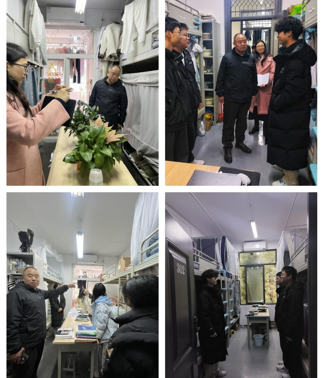 走访过程中,老师们针对寝室卫生状况,从地面清洁、物品摆放、床铺整理等方面进行检查并给予指导,引导同学们养成良好的生活习惯,共建整洁舒适的“第二家园”。同时,老师们坚持“全覆盖、无死角”原则,对寝室电路安全、电器使用等重点领域进行细致排查,重点核查是否存在私拉乱接电线、使用大功率违规电器等安全隐患。检查中发现,绝大多数寝室卫生状况良好、用电规范,但少数寝室存在杂物堆放、床铺整理不规范等问题,老师们已现场提出整改建议,要求后续整改完善。