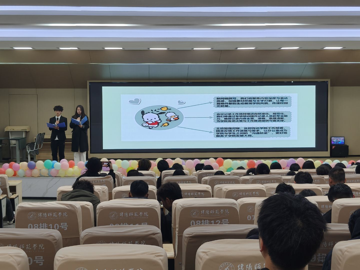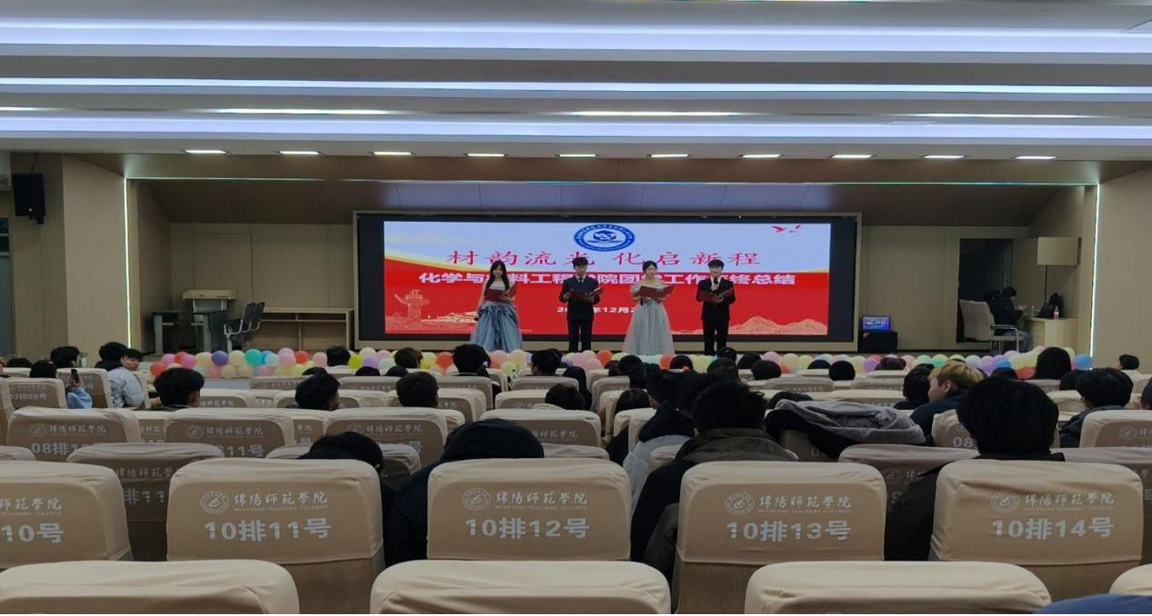 为全面总结本学期团学工作成果,表彰先进典型,凝聚奋进力量,化学与材料工程学院分团委于12月28日晚在游仙校区三教学术厅开展“材韵流光 化启新程”2025年团学工作总结大会。学院分团委书记、辅导员、教师代表、全体团学干部参会。