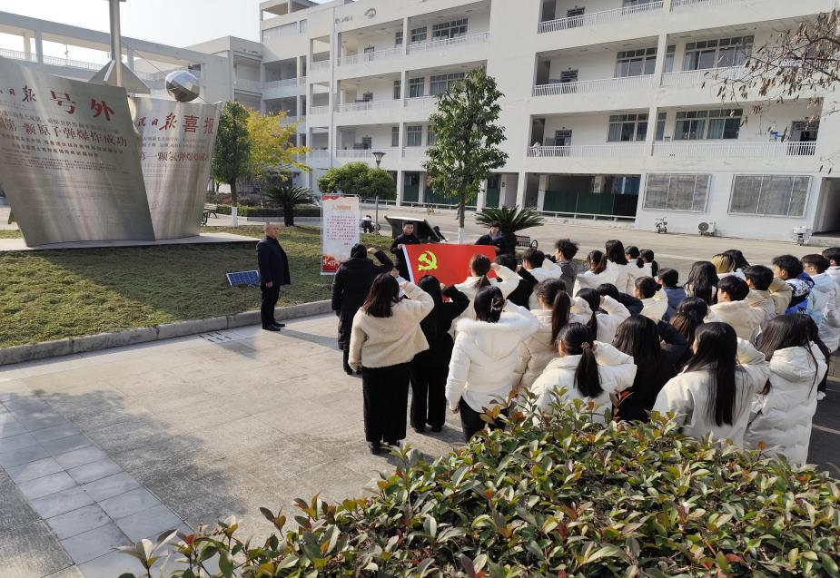 参观结束后,全体师生党员在厚德楼内人民日报原子弹、氢弹爆炸成功纪念雕塑前,举行庄重的预备党员入党宣誓暨党员重温入党誓词仪式。仪式现场,气氛庄严而热烈。在领誓人带领下,预备党员们面向党旗,高举右拳,字字铿锵、句句千钧地许下对党和人民的庄严承诺。全体在场党员重温入党誓词,回溯入党时的赤诚与热忱,在庄严的仪式中再次校准人生航向、凝聚奋进力量。随后,刘开生书记在讲话中勉励新党员要自觉铸牢对党忠诚的政治品格,以习近平新时代中国特色社会主义思想武装头脑,始终在思想上政治上行动上同党中央保持高度一致,在学习、生活、工作中发挥先锋模范作用。他强调,校史是学校精神的凝练,是育人初心的见证,全体师生党员要从校史中汲取奋进力量,牢记为党育人、为国育才的使命,坚守为人民服务的根本宗旨;要在学习科研、教书育人、志愿服务等岗位上履职尽责,充分发挥党员的先锋模范作用和党支部的战斗堡垒作用;要以更加昂扬的姿态、更加务实的作风,为学院高质量发展贡献力量。