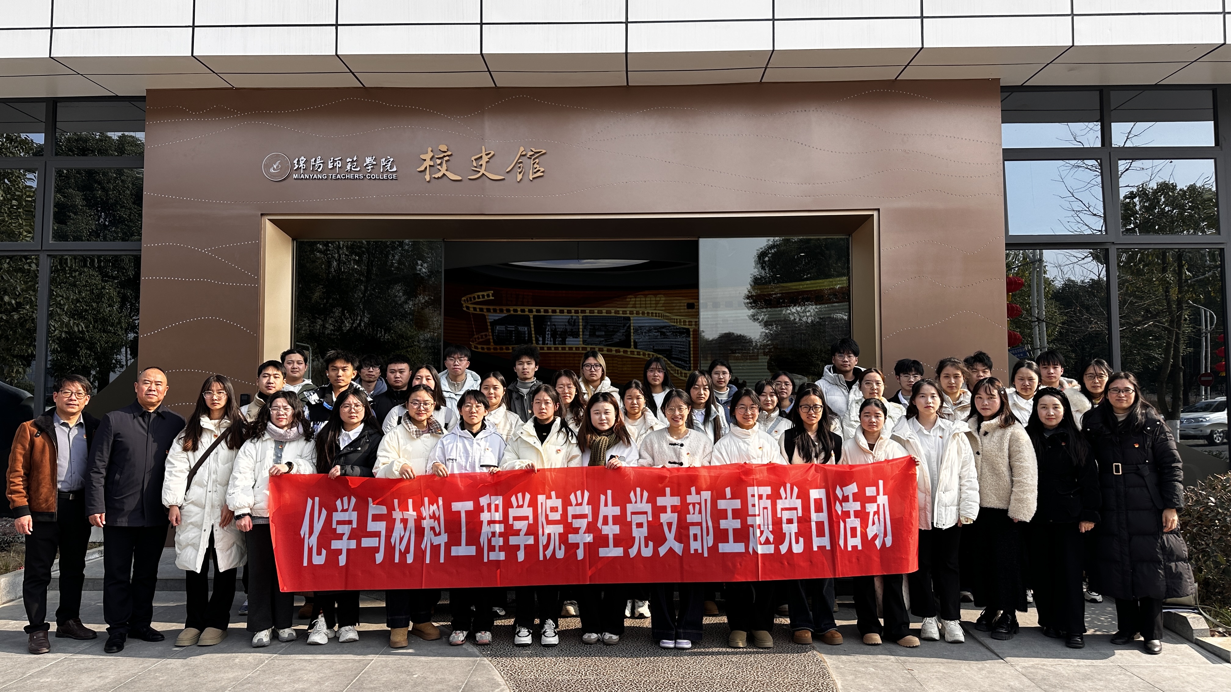 为深化党史校史学习教育,凝聚师生党员奋进力量,2026年1月9日下午,化学与材料工程学院学生党支部全体师生党员在学院党委书记刘开生带领下,赴绵阳师范学院高新校区校史馆开展“党建引领聚合力 校史育人润无声”主题党日活动。